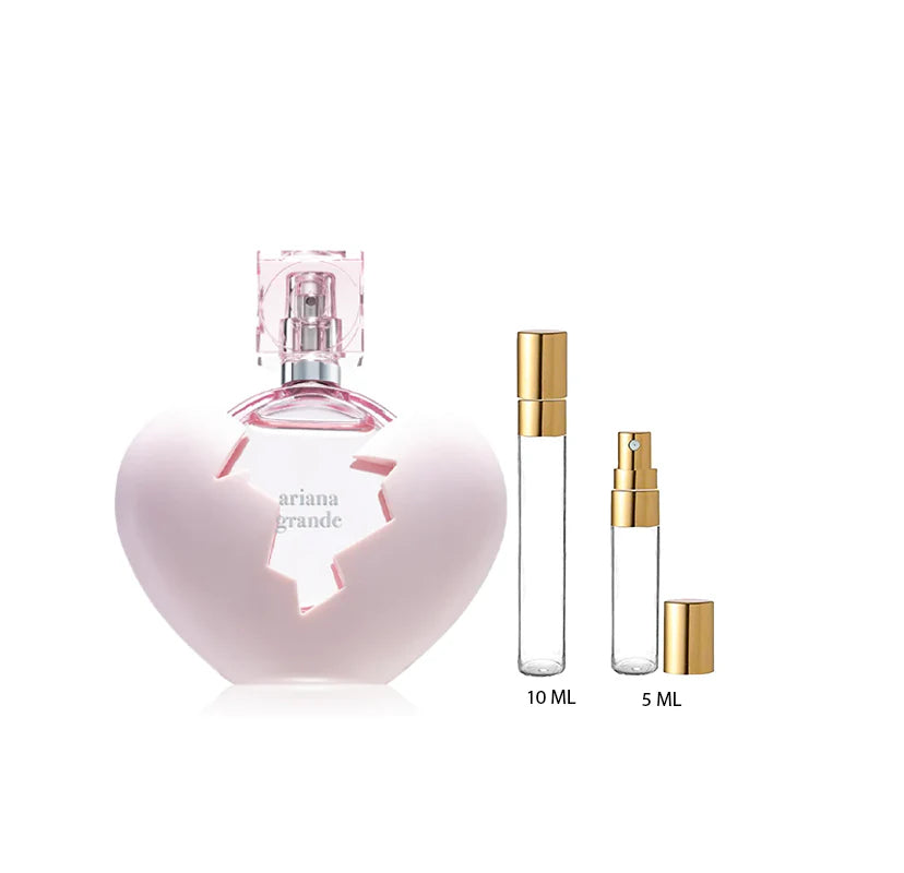 El eau de parfum Ariana Grande Thank U Next se lanzó al mercado en el año 2019 y se trata de la sexta fragancia de la cantante Ariana Grande. El diseño del frasco hace referencia al hecho de salir de cada relación siendo más fuertes que antes. Este elegante frasco, que rompe todas las reglas y las tradiciones, es un corazón valiente hecho pedazos y su brillante tapón rosa simboliza la aceptación del pasado y la promesa de un nuevo comienzo.