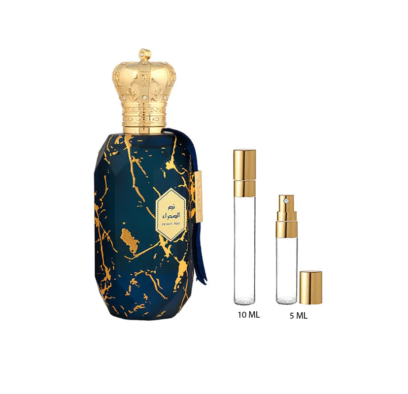 A medida que la fragancia evoluciona, sus notas de fondo de cedro, almizcle blanco y ámbar aportan una calidez duradera y una sofisticación irresistible. Desert Star no solo destaca por su complejidad, sino que también deja una estela refinada y memorable, ideal para quienes buscan una fragancia que exude lujo y distinción en cada momento.