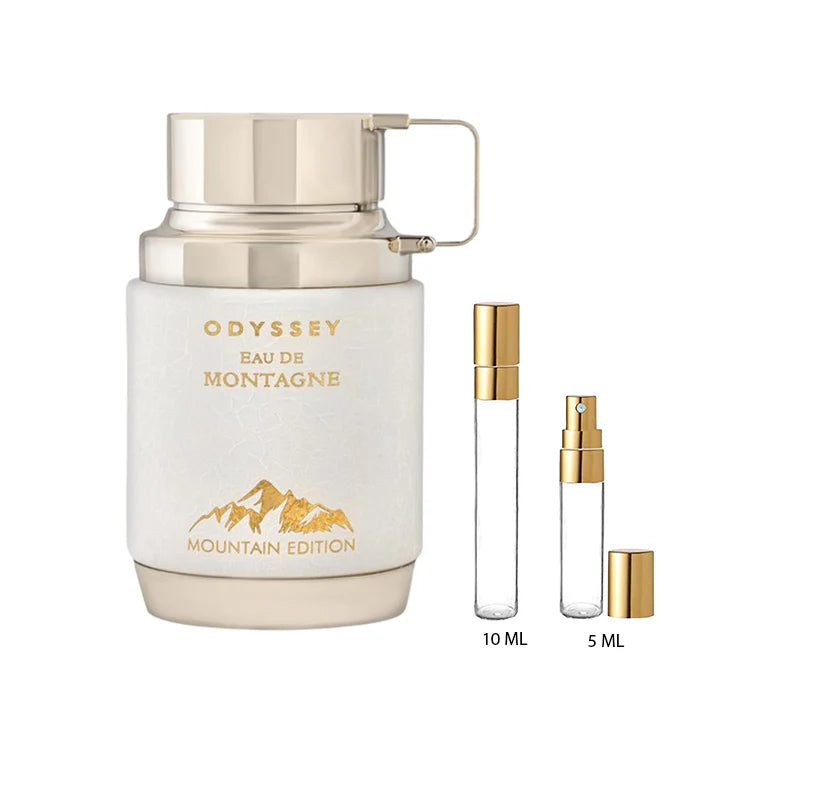Odyssey Eau de Montagne de Armaf es una fragancia oriental de vainilla que envuelve con calidez y sensualidad desde el primer instante. Se abre con un acorde adictivo de almendra, lactonas cremosas y un toque especiado que le aporta profundidad y carácter. Esta entrada suave pero intrigante se funde con un corazón delicadamente floral dominado por las flores blancas, que aportan una feminidad etérea y elegante, sin perder la neutralidad que hace de esta fragancia una joya unisex.