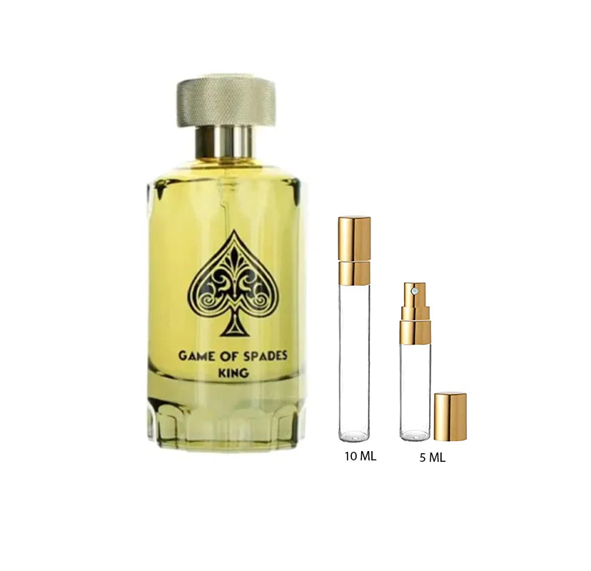 Game of Spade King de Jo Milano Paris es una fragancia de la familia olfativa para Hombres y Mujeres. Esta fragrancia es nueva. Game of Spade King se lanzó en 2021. Las Notas de Salida son naranja, bergamota y limón (lima ácida); la Nota de Corazón es frutas; las Notas de Fondo son ámbar, vainilla de Madagascar y almizcle blanco.