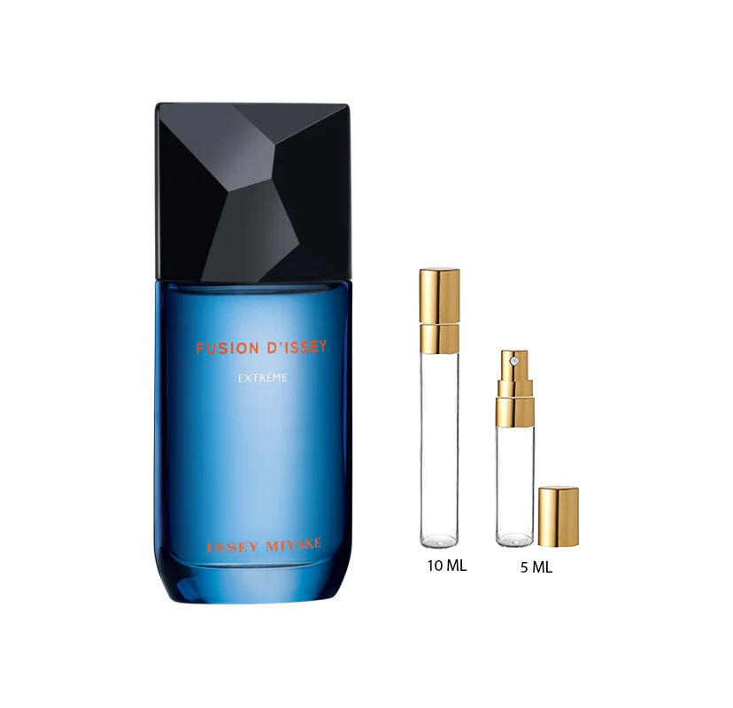 Nathalie Lorson, maestra perfumista, compuso Fusion d'Issey Extrême añadiendo una nueva faceta especiada a esta fragancia de fougère solar. El juego de contrastes entre el intenso frescor de las corrientes profundas y el calor del magma se lleva aquí al extremo. El aspecto fresco proviene de las notas picantes del cardamomo combinadas con el aroma picante de la bergamota. Entre la fuerza y el equilibrio, el aroma de la menta se mezcla con la verticalidad del profundo acorde solar mineral que es la firma de Fusion d'Issey. Por debajo, la unión única de las esencias de sándalo y pachulí.