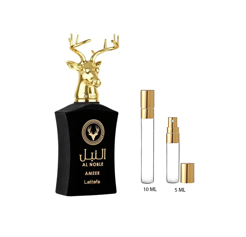 Al Noble Ameer tiene un perfil aromático rico y complejo, con una combinación de notas florales, ámbar, almizcladas, vainilla, polvo y cálidas notas especiadas.