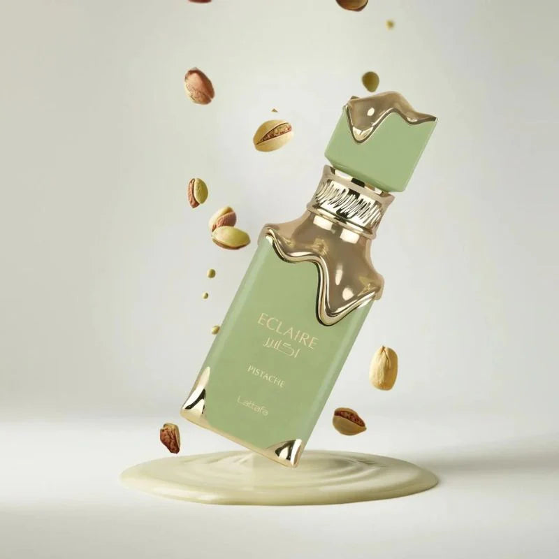 Descubre Lattafa Éclaire Pistache, un perfume árabe unisex que combina la cremosidad del pistacho dulce con la suavidad de la vainilla y un delicado toque de nata y almendra.