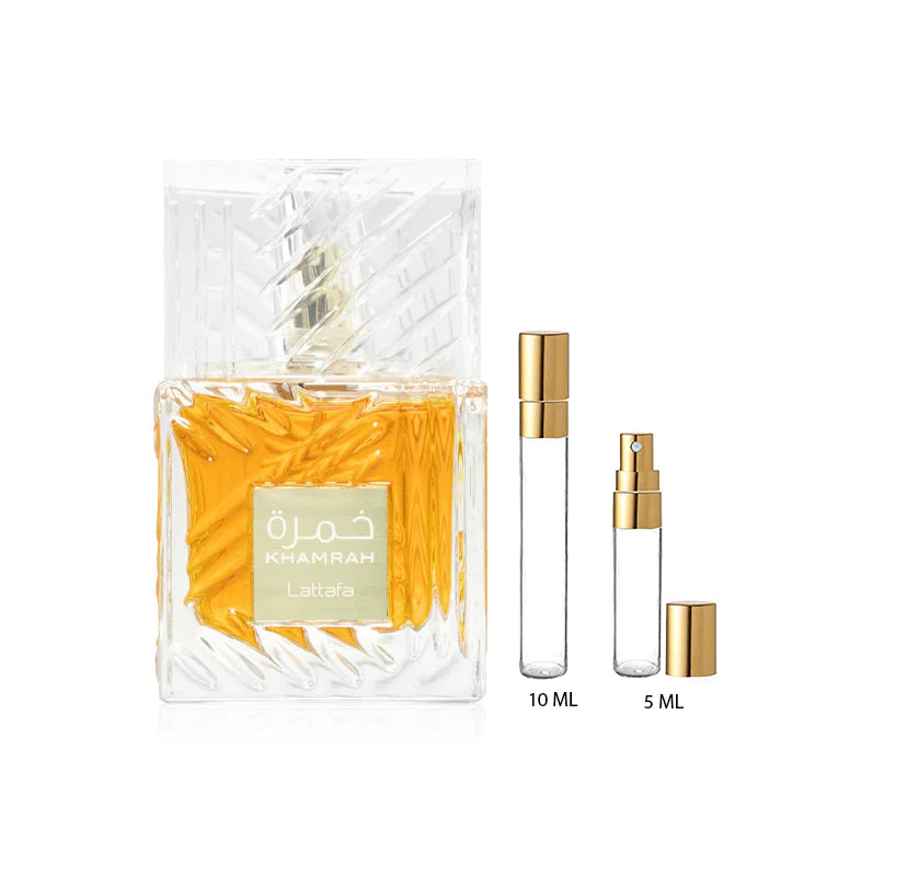 Para empezar, Lattafa Khamrah lanza un aroma fresco de bergamota, especiado con una pizca de canela dulce y cálida y una intensa nuez moscada. A continuación, su atención se centra en los sorprendentemente dulces acordes de dátil, que se entremezclan con un embriagador y endulzado iris, un embriagador nardo y suntuosos pralinés. Las notas de fondo, que se depositan en la piel, contienen notas dulces y cálidas de haba tonka tostada y benjuí de Laos en polvo, acompañadas de mirra aromática, vainilla intensa y la inconfundible madera de ámbar.