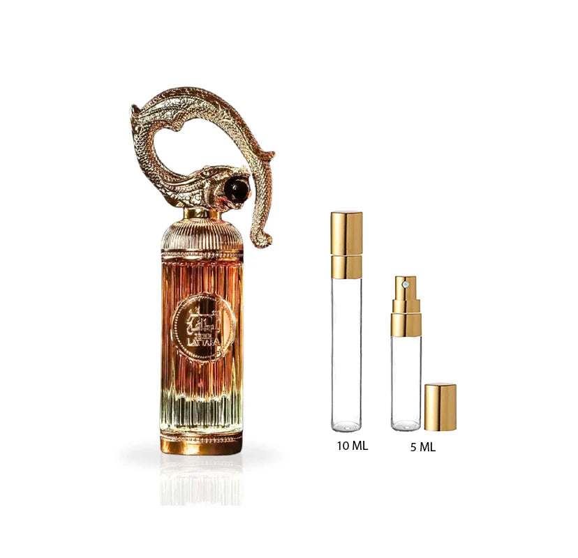 Esta fragancia se abre con una cálida y acogedora mezcla de canela y almendra amarga. La canela proporciona un aroma rico, especiado y ligeramente dulce que inmediatamente cautiva los sentidos con su calidez y profundidad. La almendra amarga agrega una nota ligeramente amarga a nuez que complementa la dulzura de la canela, creando un comienzo complejo e intrigante que es a la vez acogedor y exótico. A medida que las notas altas cambian suavemente, el corazón de la fragancia revela una hermosa y multifacética combinación de jazmín, pomarose y Akigalawood. En las notas de fondo, la fragancia se asienta en una mezcla lujosa y sensual de absoluto de vainilla, ámbar y haba tonka.