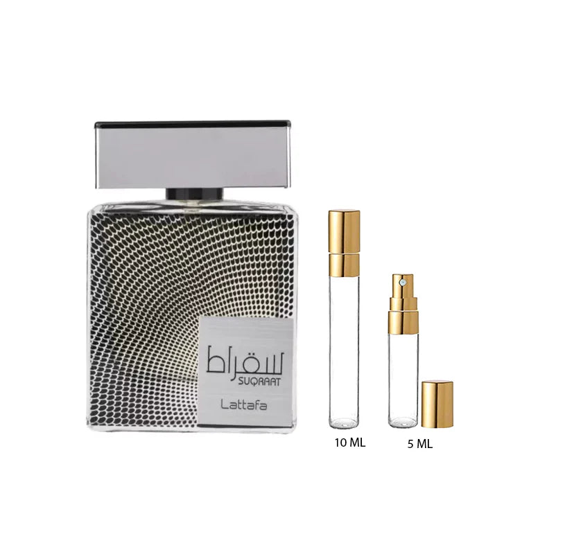 Suqraat es una fragancia elegante y atemporal que cautiva por su naturaleza opaca. Hay algunas notas que se pueden sentir inmediatamente como almizcle y lavanda que son la base del perfume. Esto se puede sentir a medida que crece en madurez.